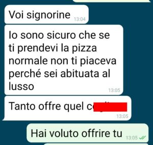 E invece… proprio su quel dettaglio si è accesa una discussione che non mi sarei mai aspettata. Nei messaggi che ci siamo scambiati dopo la serata è uscito fuori un lato di lui che non avevo minimamente intuito durante la cena: un lato fastidioso, polemico, che ha trasformato un gesto apparentemente generoso in una specie di conto in sospeso da rinfacciarmi. Da lì sono iniziati commenti e accuse assurde, al punto che ho deciso di mandare qui la nostra chat.”