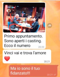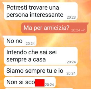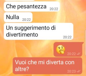 Ora però sono venuto a scoprire che tutto questo malessere, tutta questa distanza ha coinvolto anche altre persone. Si sono insinuate tra me e la mia ragazza altre persone. Chi sono lo scopro in questa chat qui sotto.