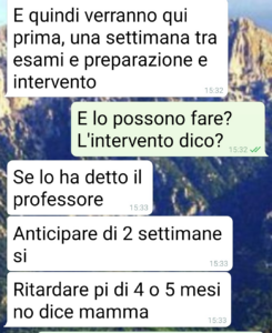 “Il mio compagno non vuole rispettare gli impegni presi con la mia famiglia perché a suo padre hanno cambiato  la data di un intervento programmato. E mi vuole pure fare passare per cattiva!