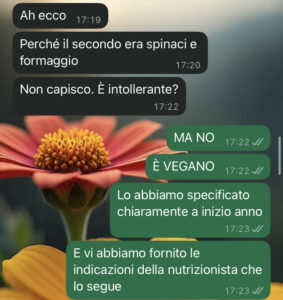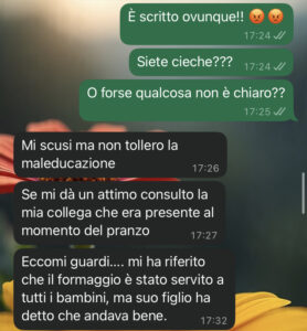 Quando l’ho scoperto ero su tutte le furie e ho scritto alla maestra! All’inizio ho cercato di restare calma, di chiedere chiarimenti con gentilezza, perché di solito non amo fare drammi per nulla. Però alcune cose ti restano sullo stomaco, soprattutto quando riguardano tuo figlio e certe regole che per noi e per la nostra famiglia sono importantissimi da anni. Sono molto delusa dalla scuola!