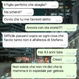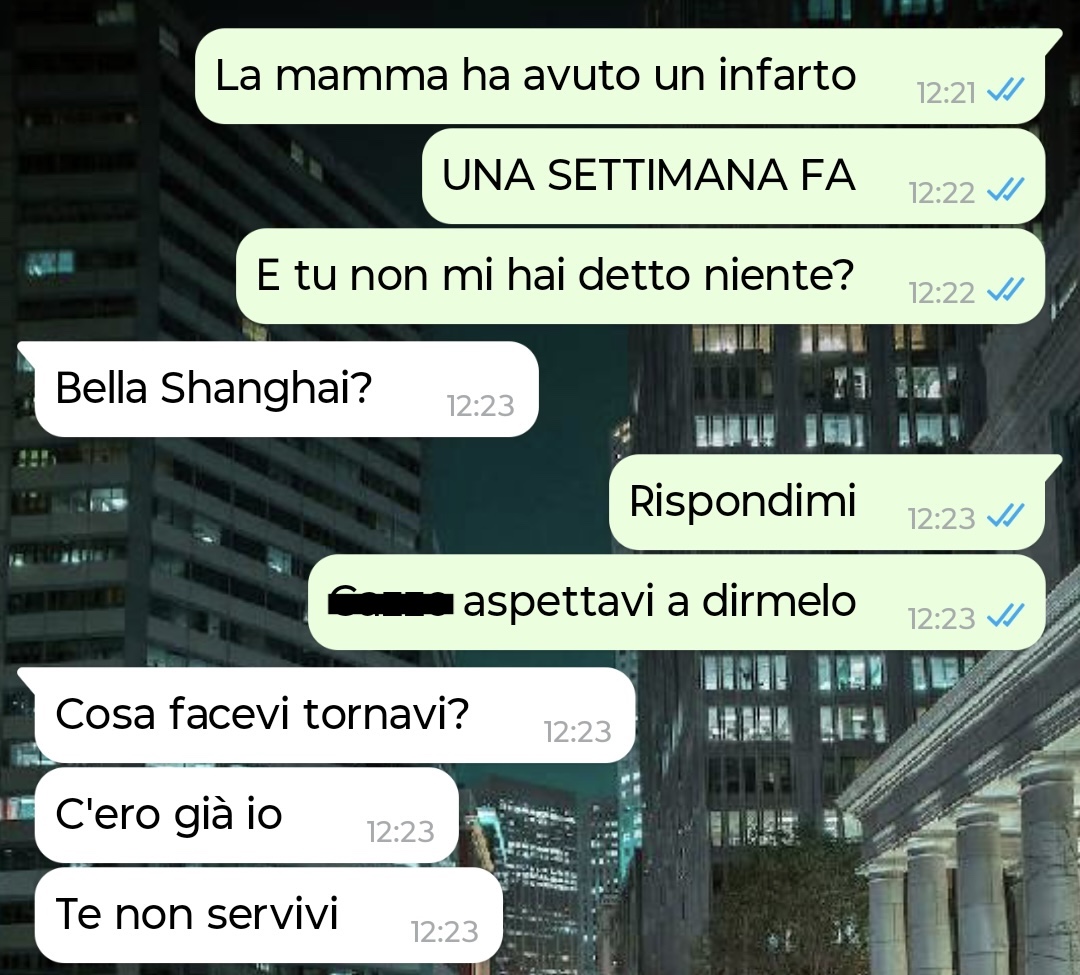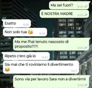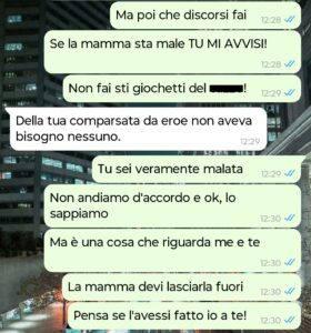 Oltre all’antipatia Sara è sempre stata gelosa di me e soprattutto del mio rapporto con la mamma (papà è mancato anni fa). Succede che mentre ero all’estero per motivi di lavoro, mamma ha un infarto. Mia sorella la soccorre, mamma viene ricoverata in ospedale, è veramente molto grave e io non lo scopro fino alla settimana dopo.
