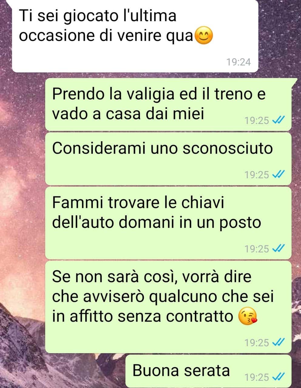 Leggi le ultime storie La decisione del Don La mia regina – Parte 2 Il braccio rotto Torna a casa Priorità familiari Emma Cane abbandonato I social controllati dall’ex Il bonifico segreto – Parte finale La porta a soffietto Rolex a rate Il messaggio cancellato Il grafico Un regalo Tradimenti ripetuti Il bonifico segreto Uno sfizio Lavoro all’estero Il bimbo abbandonato Il giorno d’aria