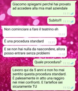 “Non ho mai pensato di dover raccontare una cosa del genere, ma quando rileggi una chat e ti rendi conto che, riga dopo riga, stavi vivendo qualcosa di profondamente sbagliato senza avere il coraggio di dirlo ad alta voce, allora capisci che tenerla per te non ha senso. Questa conversazione nasce in una giornata normalissima, di quelle in cui però senti un turbamento che non puoi ignorare. Poi arriva una richiesta fuori luogo, una risposta che non torna, e all’improvviso tutto quello che avevo ignorato per mesi ha iniziato a collegarsi. Orari strani, frasi dette a metà, promesse rimandate “a quando le cose andranno meglio”. Io che cercavo di restare calmo, lui che cambiava tono ogni due messaggi. Non ho scritto questa chat per fare la vittima né per passare da eroe. L’ho scritta perché in quel momento ho capito che o continuavo a subire, oppure facevo qualcosa che mi avrebbe messo contro qualcuno di molto più forte di me. Ogni messaggio che leggerete è stato scritto senza sapere come sarebbe andata a finire ma, alla luce di tutto, sono fiero di me stesso.”