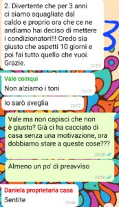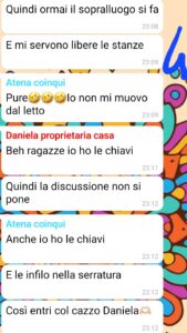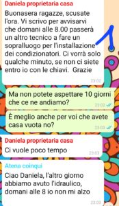 “Buonasera Spunteblu, mi chiamo Viola e sto per lasciare la casa in cui ho vissuto con le mie coinquiline e amiche negli ultimi 3 anni. Siamo tre amiche e siamo andate a vivere insieme proprio 3 anni fa. La proprietaria ha deciso di mandarci via senza darci una motivazione ma crediamo che probabilmente voglia trasformare la casa in un b&b. In questi anni abbiamo risolto i problemi della casa sempre da sole. Quando siamo arrivate era sporchissima e tante cose erano rotte o malconce. La proprietaria non era mai in città e ha sempre voluto risparmiare anche sulle cose basilari: tipo il bidet, che aveva un problema e non era utilizzabile. Abbiamo amato questa casa con tutto il nostro cuore e adesso stiamo per lasciarla ma Daniela, la proprietaria, proprio ora, ha deciso di sistemare quello che non funziona. La scorsa settimana ha mandato l’idraulico, e questa volta invece se ne è uscita con il tecnico per l’aria condizionata…io sono rimasta abbastanza calma, Valentina fin troppo…ma Atena invece non ha retto più e ha sbroccato.”
