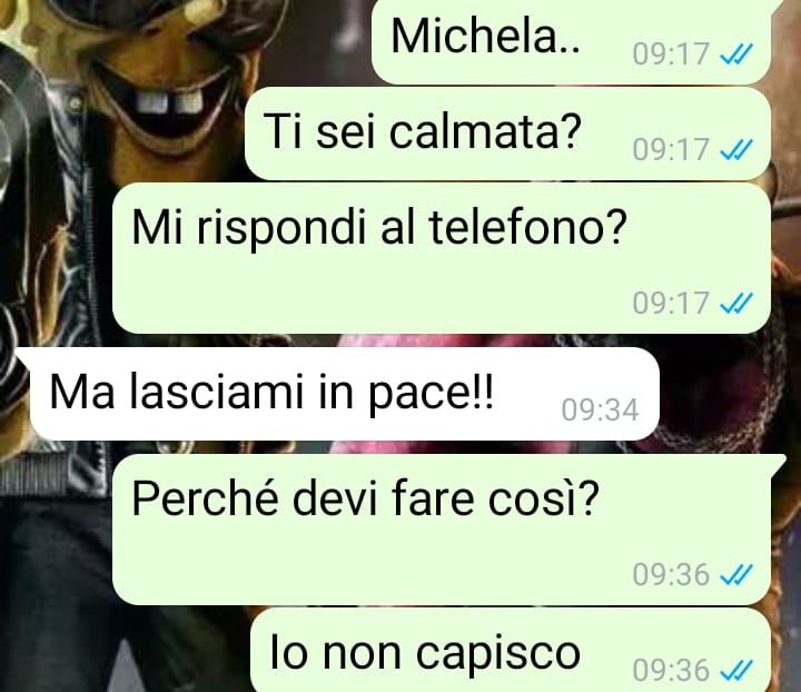 Pensavo di fare un gesto carino, che fosse apprezzato, ma quello che ne è uscito è il primo vero e proprio litigio tra me e Michela e io ora non riesco più a vederla come prima. La cosa assurda è il motivo per cui lei mi attacca. Per favore, leggete tutta la conversazione e ditemi che non sono l’unico a pensare che dietro a un gesto di galanteria non ci debba essere per forza un secondo scopo.”