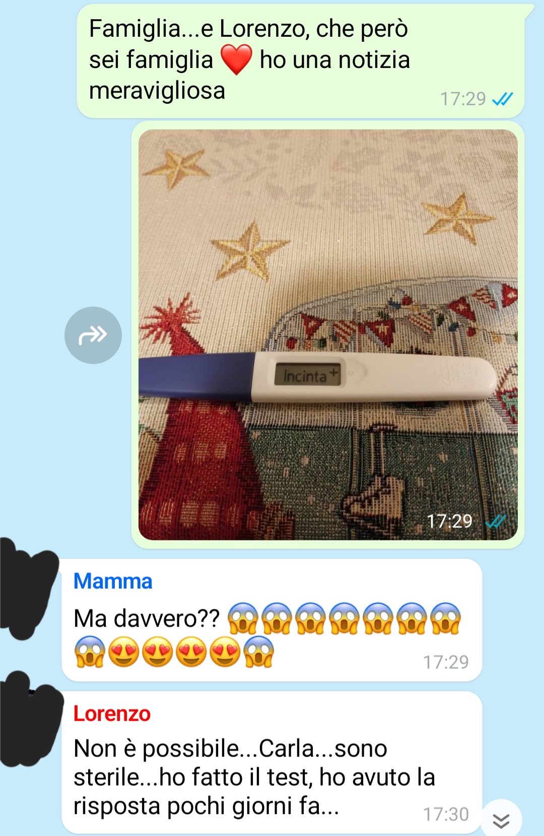 “La storia che leggerete è, probabilmente, e parlo per cognizione di causa dato che vi seguo sempre e sono un’affezionata della pagina, una delle più assurde mai viste. E la cosa peggiore è che è successa a me, e tutto nella mia vita mi sarei aspettata di trovarmi in una situazione così drammaticamente al limite tra la felicità per un lieto evento, e una estrema tragicità per tutto quello che gli ruota attorno. Ma andiamo con ordine. Sto con Lorenzo già da molto. Tra noi le cose sono sempre andate bene, anche dopo che abbiamo iniziato a convivere. Non siamo una coppia che pensa troppo al futuro e, almeno fino a poco tempo fa, io non ero la classica donna che pensa ai possibili figli, al matrimonio e così via. Ma poi è stato necessario. Ero con mio fratello Diego, che fa il medico, non avevo il ciclo e allora mi sono detta: lo faccio. Ho fatto il test e sono risulta incinta. All’inizio era stranita, poi spaventata ma poi, anche grazie a Diego, tutto si è trasformato in estrema felicità. Sono andata sul gruppo di famiglia per dare la lieta notizia anche a Lorenzo stesso e a mia mamma…ma è stato l’inizio della fine.”