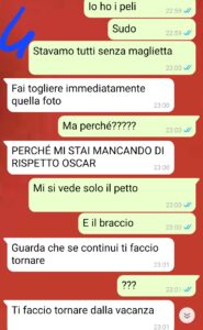 Io lavoro come lei, e come lei ho bisogno di stare sereno quando sto in vacanza. Ma a quanto pare questo a lei non interessa. Ha deciso che doveva per forza litigare ed è evidente da questi messaggi. Io mi sono ribellato perché non accetto questi comportamenti….Sinceramente non ho neanche voglia di vederla per quanto sono arrabbiato…”