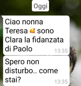 Io con mia nonna Teresa ci sono cresciuto, la vedo ogni settimana, ci parlo quasi ogni giorno. Eppure, leggere le sue parole con qualcun altro, in questo caso con la mia ragazza (questo discorso vale anche per lei, la mia Clara), mi ha fatto capire quanto amore e quanta saggezza ci sia dentro di lei. Piccole frasi, gesti normali, ricordi che custodiva senza mai vantarsene. Tutto lì, scritto in una chat.