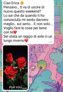 Messaggi ogni mattina, buongiorno pieni di emoticon, poesie improvvisate, foto di rose e tramonti, frasi tipo “da quando ti ho conosciuta mi sento meglio”.