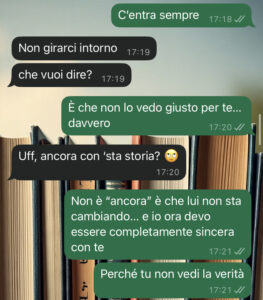 Io lui non lo sopporto. Dopo l’ennesima cafonata da parte sua, il giorno dopo ho deciso di scriverle e affrontare di petto la situazione, cercando di farla ragionare e convincerla a lasciarlo. L’esito non è stato quello che immaginavo… non ha capito che lo sto facendo per il suo bene e che da fuori è tutto così chiaro. Come si fa ad aiutare le amiche che sono in queste situazioni? Mi date qualche consiglio per favore grazie.”