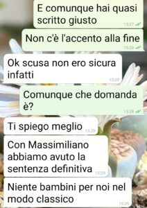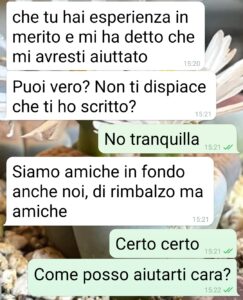 Sono Maria Luisa e sono inc****ta nera per questa chat di cui hi fatto screenshot e che vi allego. Non ci posso credere che ci sia gente che ragiona in questo modo. Se poi penso che vuole pure avere figli…Brrrr.