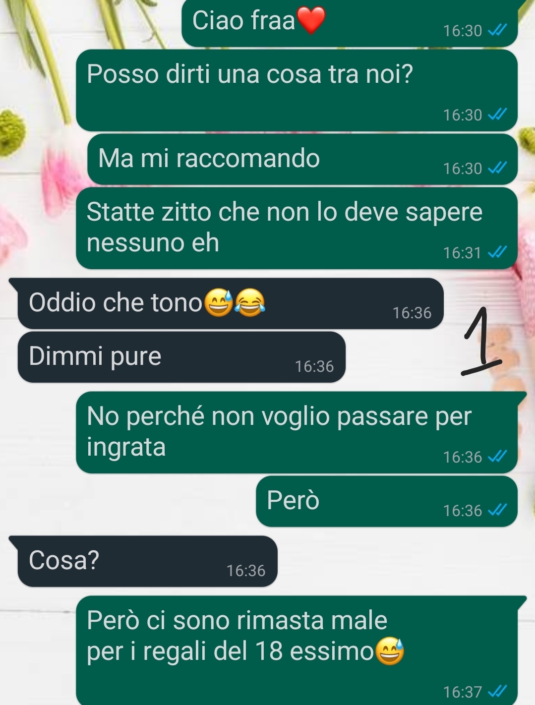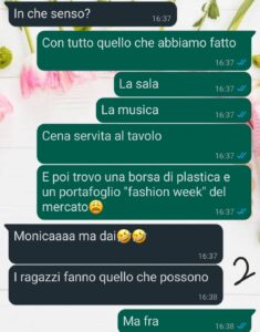 Ne ho parlato con Francesca, che è quella con cui ho più confidenza — anche perché so che poi le altre le cose gliele dice, ma almeno con tatto.