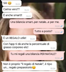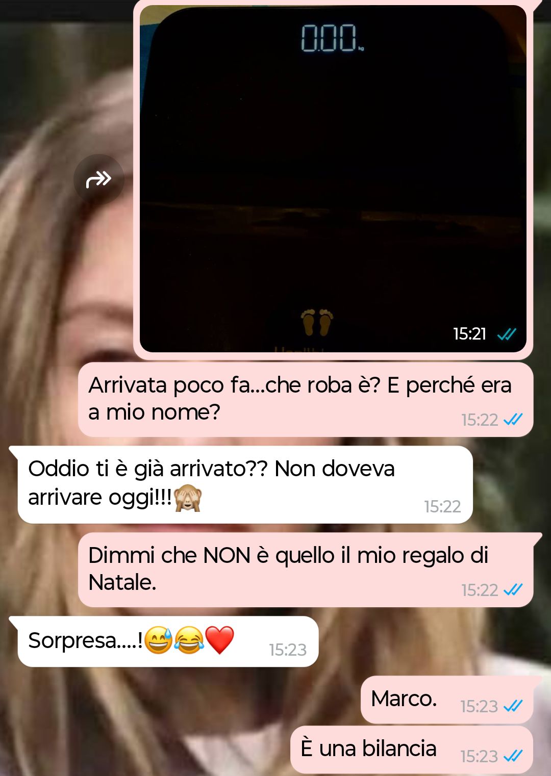 In questi giorni sto finendo gli ultimi turni al lavoro prima della pausa natalizia: pacchi ovunque, clima da feste, lucine, alberi, panettoni. È quel momento dell’anno in cui ti senti già più morbida del necessario e infatti sto cercando di non pensarci, considerando che a gennaio andremo in settimana bianca con i suoi amici. Tutti super sportivi, super in forma, super “saliamo in vetta alle 7 del mattino”. Io, onestamente, non proprio. Stamattina torno a casa e trovo un pacco Amazon davanti alla porta. Il nome è il mio. Non ricordo di aver ordinato nulla, ma siamo tutti abituati a quei momenti in cui magari hai fatto acquisti notturni e te ne dimentichi. Lo apro senza pensarci troppo. E quello che trovo dentro… beh, diciamo che non è esattamente il tipo di regalo che una ragazza vorrebbe ricevere, soprattutto prima di Natale, soprattutto da parte del proprio ragazzo, soprattutto sapendo che tra un mese dovrai passare una settimana in mezzo a gente che scia come se fosse nata su un ghiacciaio.”