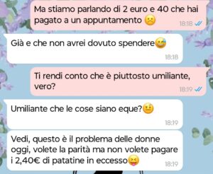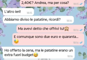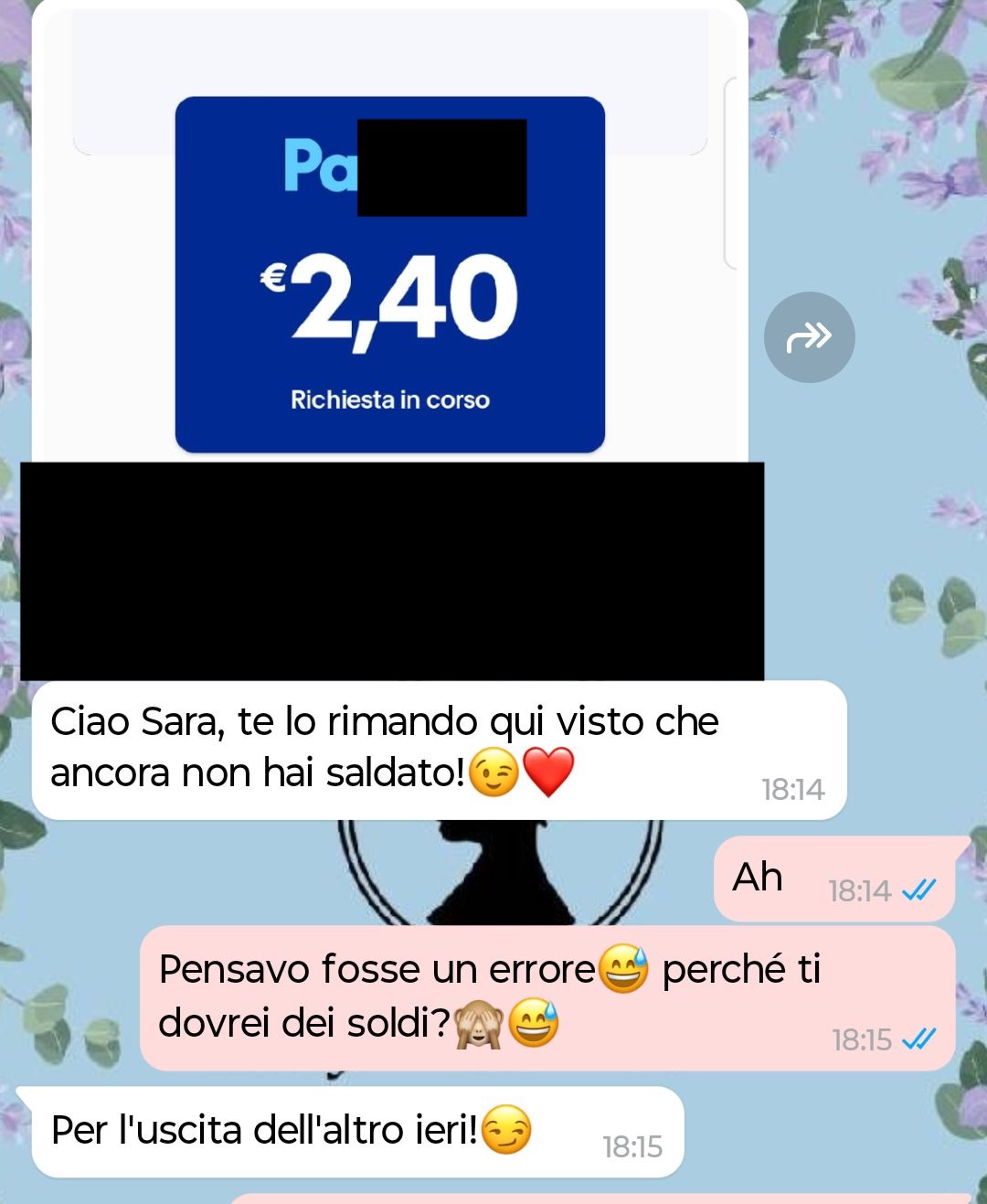 Ho appena vissuto quella che credo sia la serata più surreale della mia vita. Avete presente quando uscite con un ragazzo che sembra normale? Carino, educato, lavora, non ha tic nervosi evidenti… ecco, quel tipo di ragazzo. Ora, non è la prima volta che mi trovo a uscire per qualche appuntamento ed ero convinta di averne viste ormai di tutti i tipi, dai ragazzi perfetti e inarrivabili fino ai casi più disperati che non riesci a capire come facciano ad essere ancora in vita senza la mamma che gli taglia la cotoletta o come mai non siano in carcere. Questa volta pensavo di avere fatto centro con una persona quantomeno normale. Siamo stati a cena, abbiamo chiacchierato, riso e poi ci siamo fatti un ultimo drink in un locale e condiviso un piatto di patatine fritte. Lui ha pagato il conto (nonostante io avessi insistito per dividere) facendo il gesto da grande signore. Mi ha accompagnata a casa, un bacio casto e via. Pensavo: “Cavolo, forse ne ho trovato uno sano”. Poi, stamattina, mi sono svegliata con una notifica. Non era un “Buongiorno bellissima”, ma una richiesta di pagamento. Quello che leggerete è il motivo per cui ho deciso che d’ora in poi uscirò solo con il mio gatto, che almeno non mi chiede il rimborso per le crocchette che gli cadono dalla ciotola.”