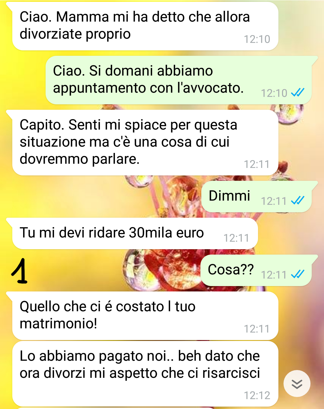 Bene, ora divorzio.. e i miei mi chiedono il rimborso!!”