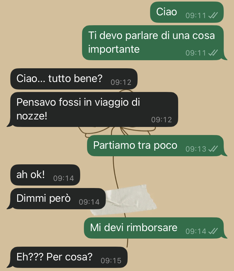 “Un caro saluto a tutti i lettori della pagina. Vi scrivo perché ieri mi sono sposata ed è successa una cosa veramente brutta. La giornata in sé è stata bellissima, organizzata nei minimi dettagli. Io e mio marito non avevamo un budget molto alto, ma volevamo comunque sposarci per suggellare il nostro grande amore..