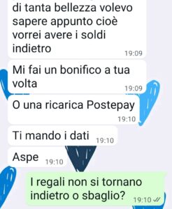 Io ora non prendo l’aereo e chiedo alla compagnia aerea il rimborso. Cioè poi qui stiamo parlando di un regalo. Cioe mi chiedi indietro un regalo?? Ma con che faccia??