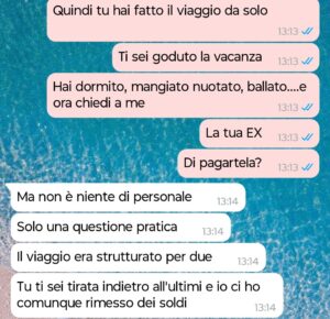 Ma vi giuro che è successo. E non ho dovuto leggere due volte: già alla prima ero confusa, alla seconda arrabbiata, e alla terza ridevo per non urlare. Questa è una di quelle conversazioni che, a distanza di ore, ancora non sai bene come classificare. Tragica? Grottesca? Inquietante? Un mix? Io ve la lascio qui così com’è. Solo una richiesta ricevuta da un ex, che mi ha lasciato a bocca aperta.