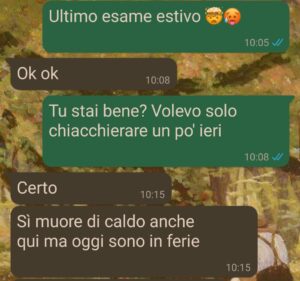 Solo che… ci sono cose di cui non si parla. Eppure la cosa assurda è che lei il coraggio lo ha avuto: sta con una donna, Mara, e ha trovato con lei l’amore e la pace che si merita. E pensate che Mara ha una figlia, con la quale ho legato così tanto che la chiamo sorella. Ma forse è proprio questo ad avermi frenato tanto. So che lei temeva molto di avermi dato il “cattivo esempio”, una volta l’ho sentita dire questo al telefono con mia nonna. E infatti ha sofferto molto la stigma sociale. Molte amicizie le ha perse da quanto sta con Mara. E io non so, forse non volevo farla soffrire di nuovo. Forse pensavo che per un uomo era diverso che per una donna. Peggio, in qualche modo.