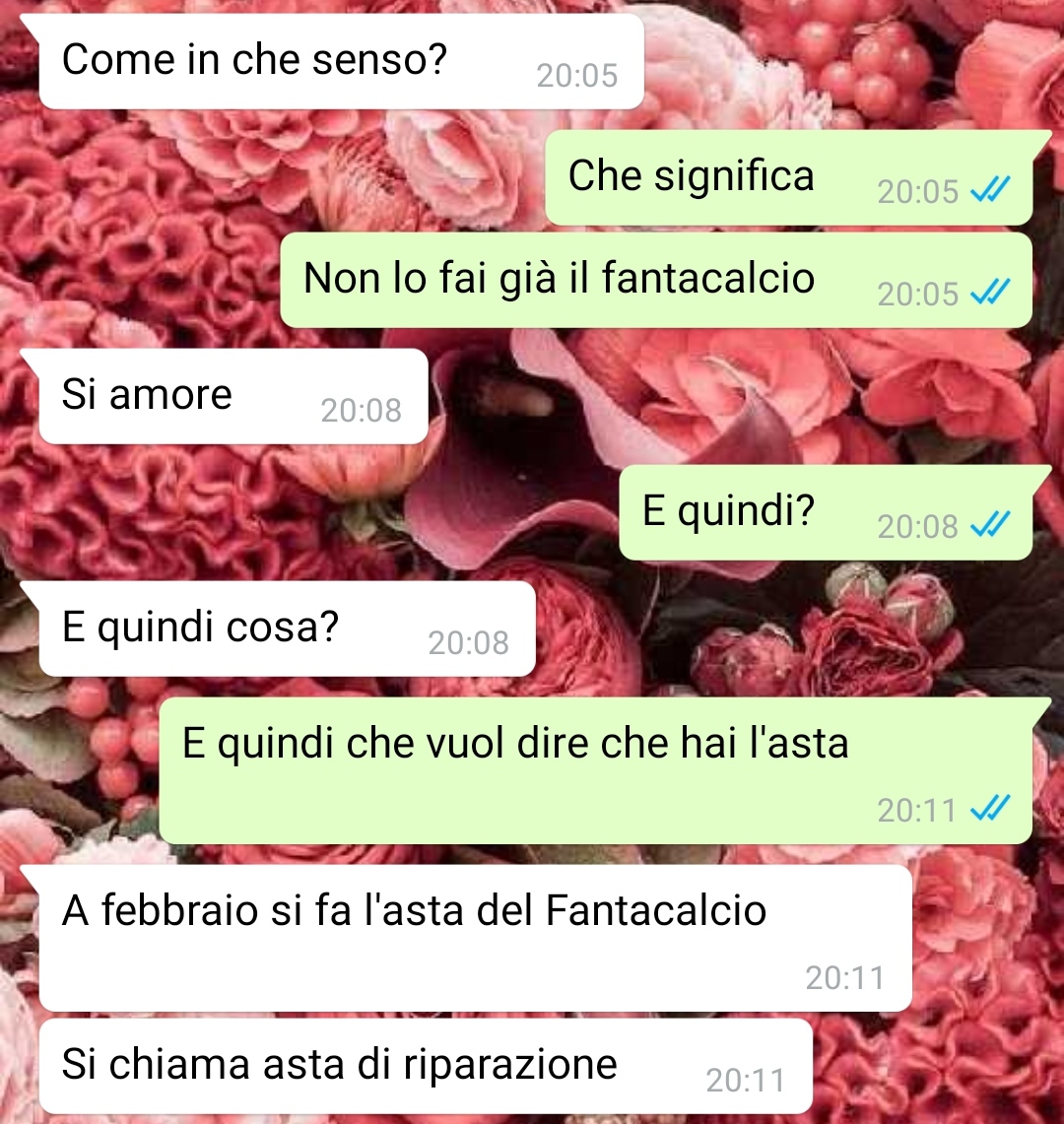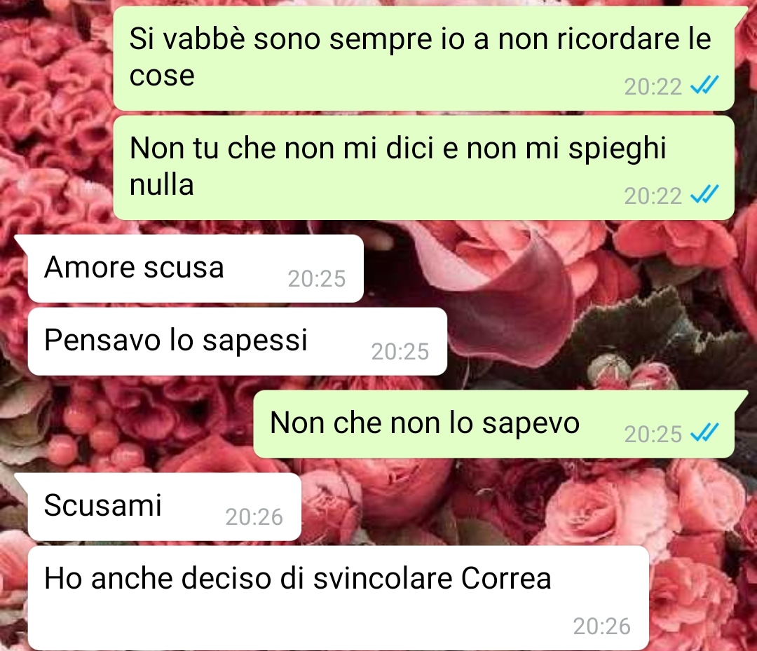 Vengo messa sempre all’ultimo posto, ma che dico, ultimissimo posto, dopo tutto, dopo il calcio, dopo il fantacalcio, poi sarò forse io ad esagerare ma cosa c’è di male in Sanremo? Perché dovrebbe essere una cosa per vecchi? Chi lo dice? Non capisco. Poi lui vuole pure svincolare l’unico bono che ha in squadra cioè Correa (per le ragazze andate a cercarlo se non lo conoscete è veramente un bono atomico), cioè lo fa per farmi un dispetto è palese.