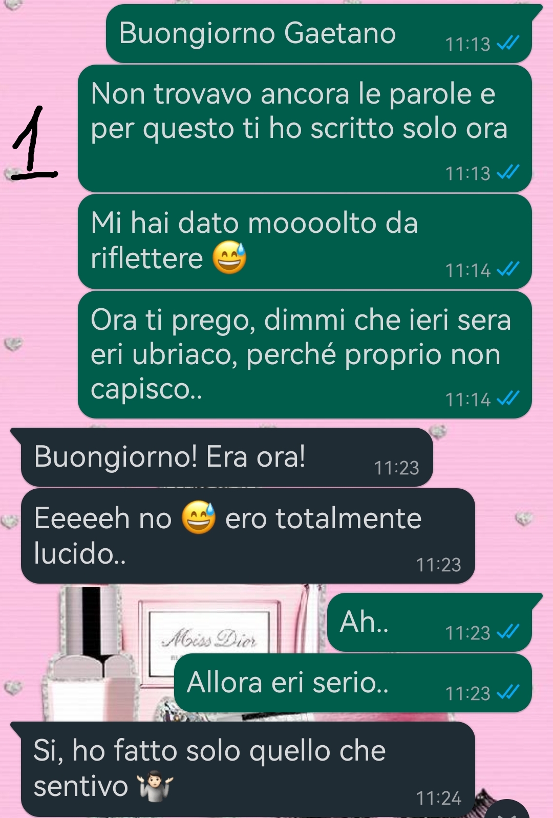 Io e Gaetano stiamo insieme da sei mesi. Non siamo ragazzini: lui ha 37 anni, io 30. Ci conosciamo abbastanza per capire che c’è qualcosa di speciale, ma anche tante cose ancora da scoprire. È stato lui a propormi la relazione, con la sua dolcezza un po’ goffa e il suo sorriso che mi fa sempre sentire a casa.