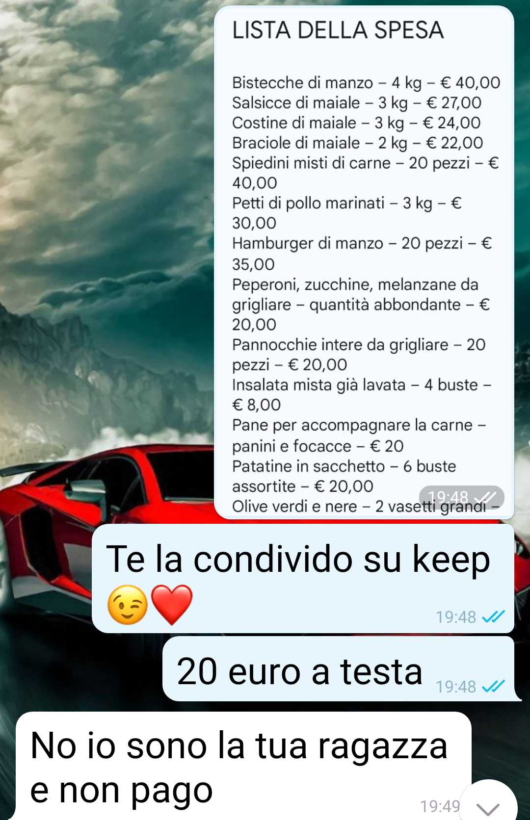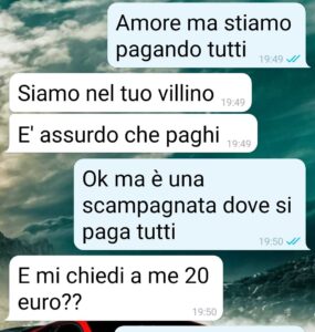 “Ho chiesto 20 euro per la scampagnata del 25 aprile alla mia ragazza. Lei però è superiore e non vuole pagare.