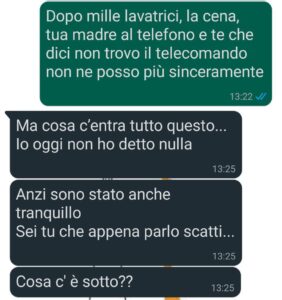 Pensavo che quel modo di parlarmi, gli scatti improvvisi, quel tono sempre sul punto di esplodere… fosse solo paura.