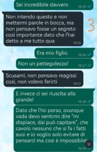 Avevo un segreto importante, una cosa che volevo tenere per me e condividere solo quando mi sarei sentita pronta. Invece, senza che le dessi alcun permesso, lei ha deciso di “anticiparmi” e raccontarlo in giro. Da lì in poi la mia vita è diventata un inferno: persone che mi fermavano, frasi di circostanza che non volevo sentire, un dolore che avrei preferito vivere in silenzio e che invece è diventato pubblico.