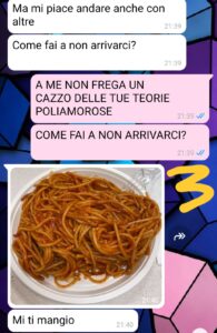 “Ciao a tutta la pagina e alla redazione di Spunteblu, sono una ragazza di 28 anni e vi seguo ormai da tantissimo tempo ma mai prima d’ora mi era capitato di pensare di mandarvi una delle mie conversazioni whatsapp. Fino a poco tempo fa ero felicemente fidanzata con Giovanni da 2 anni. Lui sembrava proprio il ragazzo perfetto, quello da sposare e con cui fare una valanga di figli. Invece purtroppo improvvisamente è venuto fuori che era tutta una fregatura enorme e che il signorino aveva altre tre relazioni ( lui dice solo fisiche, ma onestamente, cosa cambia?) e io ero solo una delle tante. Appena l’ho scoperto l’ho lasciato e lui mi ha rifilato una scusa per me fuori dal mondo, la poligamia.