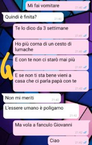“Ciao a tutta la pagina e alla redazione di Spunteblu, sono una ragazza di 28 anni e vi seguo ormai da tantissimo tempo ma mai prima d’ora mi era capitato di pensare di mandarvi una delle mie conversazioni whatsapp. Fino a poco tempo fa ero felicemente fidanzata con Giovanni da 2 anni. Lui sembrava proprio il ragazzo perfetto, quello da sposare e con cui fare una valanga di figli. Invece purtroppo improvvisamente è venuto fuori che era tutta una fregatura enorme e che il signorino aveva altre tre relazioni ( lui dice solo fisiche, ma onestamente, cosa cambia?) e io ero solo una delle tante. Appena l’ho scoperto l’ho lasciato e lui mi ha rifilato una scusa per me fuori dal mondo, la poligamia.