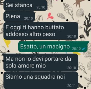 In più, come se la vita avesse deciso di fare la lista completa, in questi giorni al lavoro l’aria è pesante. Io mi sto sforzando di restare adulta, razionale, composta. Ma la verità è che quando sto male mi viene solo da desiderare una cosa piccola e stupida: mia madre che capiva tutto senza domandare troppo. Invece, ieri sera, in un momento in cui mi sentivo vuota e spaventata, mio marito ha fatto una cosa semplice. Dolce. Di quelle che ti spaccano il cuore perché ti ricordano cosa hai perso… e anche cosa, incredibilmente, hai ancora. Mi sento così fortunata ad averlo trovato e soprattutto: credete nei piccoli gesti, fanno la differenza.”