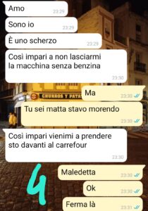 “Ciao vi scrivo per mandarvi una chat di ieri sera con la mia ragazza. Lei si chiama Arya, la amo tantissimo ma è una persona veramente particolare. Noi dividiamo spesso la mia macchina e ieri sera lei l’aveva presa per andare da una sua amica. È capitato un milione di volte e non è mai successo niente. Di solito mettiamo benzina alternandoci in base a chi la consuma di più. Quel giorno toccava a me metterla e me ne sono dimenticato. Lei ha preso la macchina e ovviamente non ha fatto rifornimento neanche lei, quindi la macchina si è fermata. Ma questo non è niente rispetto a quello che ho passato in quei pochi minuti di panico. La mia ragazza mi ama ma è veramente impegnativa ragazzi giuro! Non si può mai stare tranquilli, mai!”