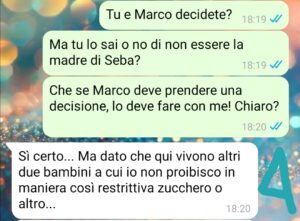 Purtroppo da quando io e il padre ci siamo separati, il bambino vive in due case…e per quanto io mi sia raccomandata con mio marito di mantenere le stesse regole nelle due case…beh, ho scoperto che non solo c’è qualcuno che mi rema contro ma mette a repentaglio la salute di mio figlio. Ed è gravissimo.