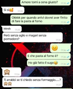“Ciao, cuoco casalingo di 29 anni cerca aiuto. Conosco una ragazza, mi innamoro, lei pure e come si sa, la gola è sempre un ottimo modo per tenere vicine le persone che si amano. Non sono uno chef, ma mi piace cucinare ed è sempre stata un’arma di cui ho saputo fare buon uso. La frequentazione prosegue, ci mettiamo insieme e dopo un po’ decidiamo di vivere insieme, con la mia dolce metà che si trasferisce da me. Le nostre cenette diventano pranzi, colazioni e merende, cosa che sarebbe anche carina e romantica non fosse che cucino solo io…o meglio, che cucino per due ma letteralmente: ho scoperto che lei non mangia NIENTE. Nulla assoluto. Per motivo insensati, decide arbitrariamente di giorno in giorno che qualcosa non le piace, che sia aglio, carote, sedano o formaggi, non importa se il giorno prima non le avevano dato problemi. Sostanzialmente, ha dei gusti infantili, come un dodicenne viziato. Anzi, forse è una dodicenne viziata. E proprio su questo ci siamo scontrati. Che vita è quella in cui, dopo una giornata di lavoro, devi cucinare costantemente due cene diverse? Una più o meno normale, la mia, e una in bianco o secondo schemi e regoline improvvisate, capricci che ti fanno saltare i nervi. E se un giorno avessimo un bambino? Devono farne tre diverse? Magari anche per il cane o il gatto? A quanto pare, far notare questa problematica equivale a dichiarare di non essere più quello di prima e probabilmente, dal suo punto di vista, a offendere persino la sua famiglia. E forse, dico forse, anche la sua famiglia qualche colpa potrebbe averla se non ha mai corretto questa sindrome del non mi piace che normalmente si supera con la mensa delle elementari….”