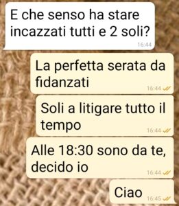 Leggi le ultime storie Serata da fidanzati L’ultimatum – Parte finale Vegana a tratti – Parte Finale Mutuo mutuo delle mie brame – Parte finale L’appuntamento Messaggi misteriosi L’anello Anniversario o lavoro La scaletta L’ultimatum RCA da condividere Mille e una notte Il ruba oggetti Mutuo mutuo delle mie brame – Parte 2 Il comitato Francesco e la mamma Preferenze In viaggio con l’ex La nonna La postilla