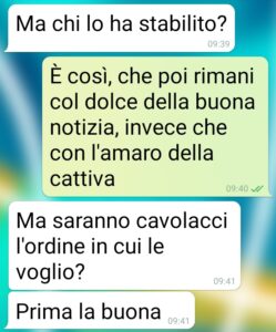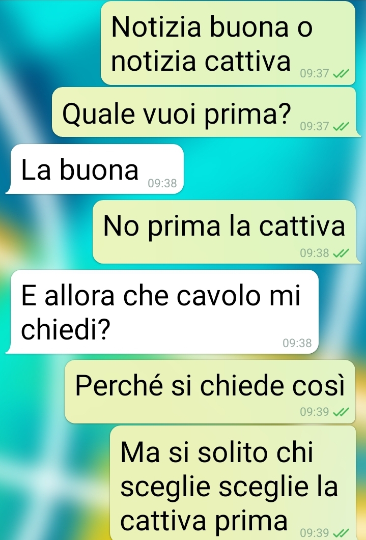 Ciao pagina di spunte blu. I mie zii e i loro figli non possono più andare a fare la settimana bianca che avevano già organizzato e generosamente mi hanno dato le chiavi per andare io con chi voglio (ho scoperto adesso che la loro è una casa in multiproprietà). Spettacolo! Una baita di legno praticamente in mezzo alle montagne, sulle piste da sci. Cosa c’è di più romantico di questa settimana con la fidanzata? Qualcuno può vedere questa cosa come una cattiva notizia? Beh lei si. Mi ha smontato tutto. Salvo poi fare dietrofront quando una delle mie disperate ipotesi per convincerla… la convince. Ma io non sono contento a pensarci bene. Perché mi pare chiaro che non sono la priorità nella sua testa. Forse che non sta bene con me? Ditemi qualcosa voi perché mi sento ferito ma non so se sbaglio a livello razionale”