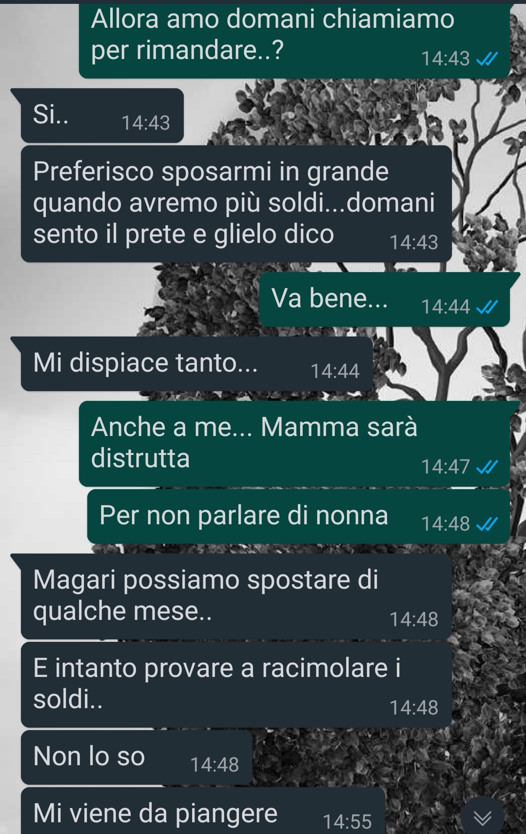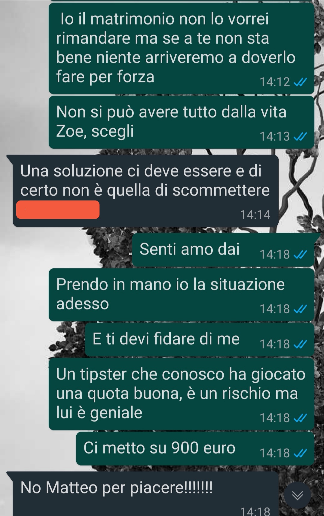 “Zoe mi ha immediatamente chiamato arrabbiatissima per dirmi di non toccare i soldi e non giocare nessuna schedina e che dovevamo rimandare il matrimonio. Io le ho detto di sì… ma ho giocato lo stesso.”