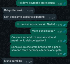 Questa chat racconta il momento in cui tutto è crollato. Un momento che ha trasformato la mia vita da sogno in un incubo.