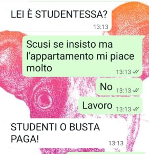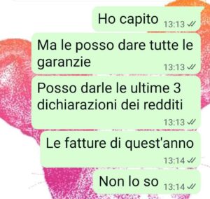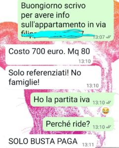 Ecco la chat con il proprietario. Gli ho detto che lavoro in proprio e ho la partita IVA. Da lì, il gelo.