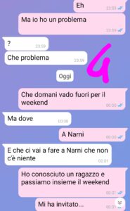 Ma cominciamo dall’inizio: da circa un anno mi sono trasferita a Roma per studiare all’università e ho lasciato un paese molto piccolo e i miei amici di sempre. Tra loro ci sono Fonzo ( Alfonso) e Stella. I miei migliori amici. Prima che io partissi passavamo tutti i giorni insieme…ma quando mi sono trasferita è cambiato tutto, ovviamente. Ci vediamo ogni tanto per recuperare il tempo perso, ma non è la stessa cosa. Di recente ho conosciuto un ragazzo molto carino all’università. Si chiama Mattia e mi piace tanto. Dopo le prime uscite abbiamo capito entrambi che insieme stiamo bene…e allora lui mi ha chiesto di passare un weekend fuori Roma e io ho accettato. I miei amici l’hanno presa malissimo…”
