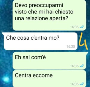 E ho pensato se mi chiede una relazione aperta, forse teme di essere incinta?”
