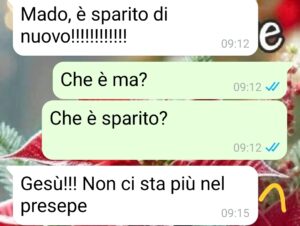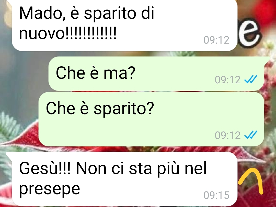 Tipo che Gesù bambino non vuole più stare nella culla e si sposta da solo per casa. Io so benissimo che non è così, ma lei è fatta così: super credente, super emotiva, super… suggestionabile. E poi quest’anno è già in paranoia perché non si è ancora confessata.