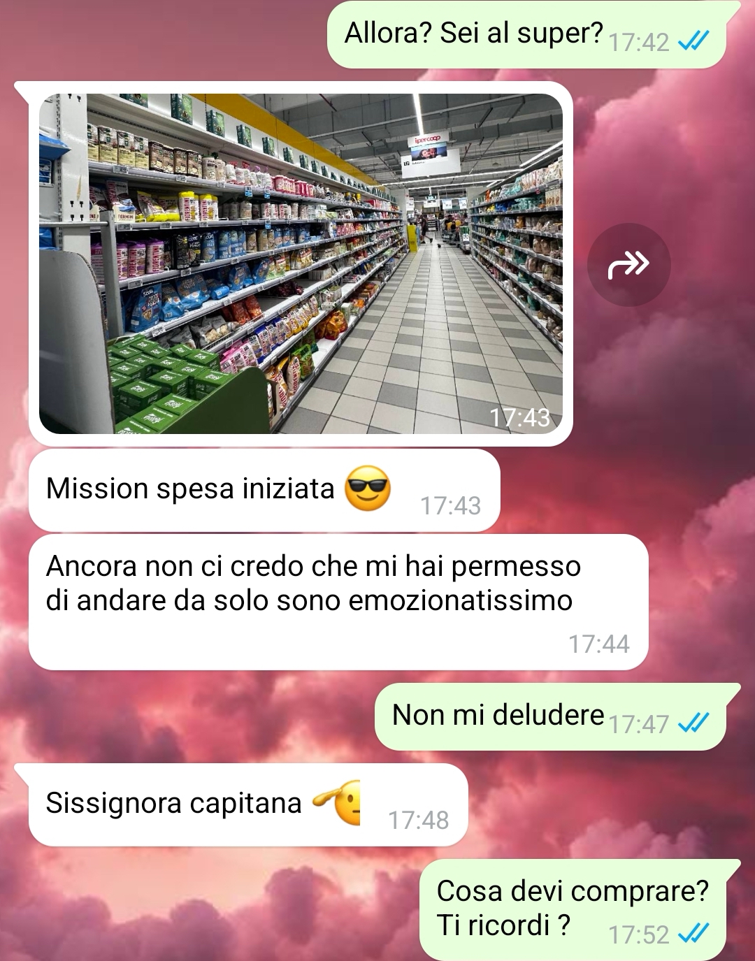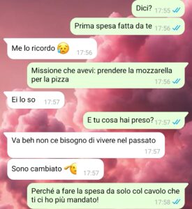 Questa volta però è successa una cosa diversa. Dovevamo avere amici a cena, io ero piena di lavoro e non avevo il tempo materiale di andare al supermercato. Lui si è offerto di andarci e io, contro ogni mio istinto, ho accettato. Secondo voi ce l’ha fatta a non combinare disastri?”