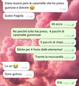 “Il mio fidanzato ha un piccolo grande problema: non sa fare la spesa. Appena entra in un supermercato perde il lume della ragione e non riesce a resistere: prende cose a caso, senza pensare minimamente a quello che serve davvero. Risultato? Torna sempre a casa con un sacco di cose inutili e ovviamente si dimentica la metà di quello che c’era da comprare. E prima che me lo diciate, lo so che capita a tutti, ma lui ha proprio un problema… e ha trent’anni!!! La prima e ultima volta che è andato da solo a fare la spesa è stato un disastro!! Infatti, dopo quell’episodio gli ho detto chiaramente, anzi gli ho proprio proibito!, che non sarebbe più potuto andare senza essere sorvegliato. Uno perché i soldi non crescono sugli alberi, due perché non posso ogni volta arrabbiarmi come una pazza.