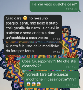 Vi lascio alcuni screen perché ho bisogno di capire se sono io che sto esagerando o se c’è davvero qualcosa di grave qui… soprattutto una grande mancanza di rispetto nei miei confronti!!