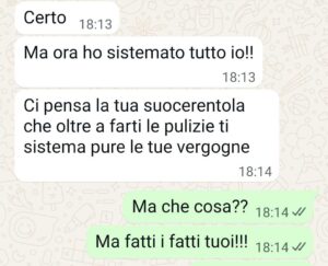 Mia suocera è pessima. È giusto che salga a pulirmi e rovistarmi casa??? Si è permessa di fare una cosa che mi ha fatto uscire fuori di me oltretutto!!”