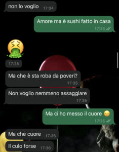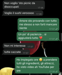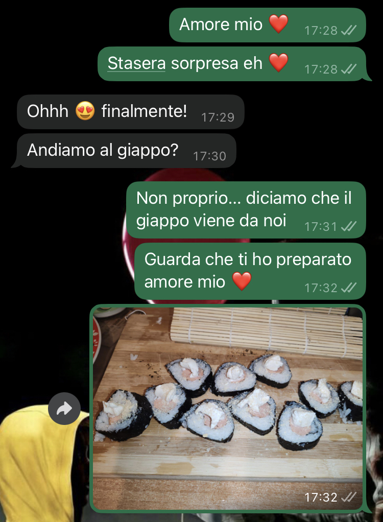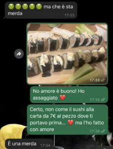 La portavo a mangiare sushi almeno due volte a settimana, ora non posso più permettermelo. Passo le giornate a cercare lavoro, ma ieri mi sono impegnato tanto per ridarle un pizzico di normalità e le ho preparato il sushi in casa… Vi lascio leggere la sua reazione.”