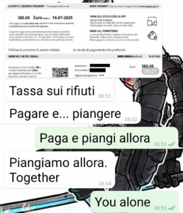 “La mia compagna vuol pagare la tassa sui rifiuti della sua casa al 50 percento. Io non sono d’accordo, e ho i miei motivi.
