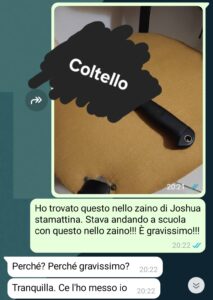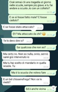 “Tutto mi si può dire tranne che non sarei pronta a tutto, anche a dare la vita, per i miei figli. Ne ho fatti di errori nella vita, sia come donna che come madre, anche perché nessuno ti insegna mai a fare il genitore e anche dopo anni e anni, c’è sempre da imparare. Ma su una cosa non accetto alcun tipo di critica. Ho educato i miei figli alla non violenza e questo principio lo difenderò finché sarò viva, anche se dovessi scontrarmi con chi ho di più caro al mondo, come in questo caso, con mio marito Gaetano. Mia figlia ha 15 anni mentre mio figlio ne ha 17. Ovviamente, come tutta Italia immagino, siamo rimasti più che scossi dai tragici eventi degli ultimi giorni e, avendo figli di quest’età, la sofferenza, così come il timore e la preoccupazione, sono doppi. Io, come penso sia giusto che sia, ho affrontato l’argomento direttamente con i miei figli, negli scorsi giorni, parlandoci, facendo loro capire che questa non è la normalità delle cose e facendo loro capire cosa sia giusto e cosa sbagliato. Mio marito, ha usato tutto un altro approccio ma non potevo fargliela passare liscia.”