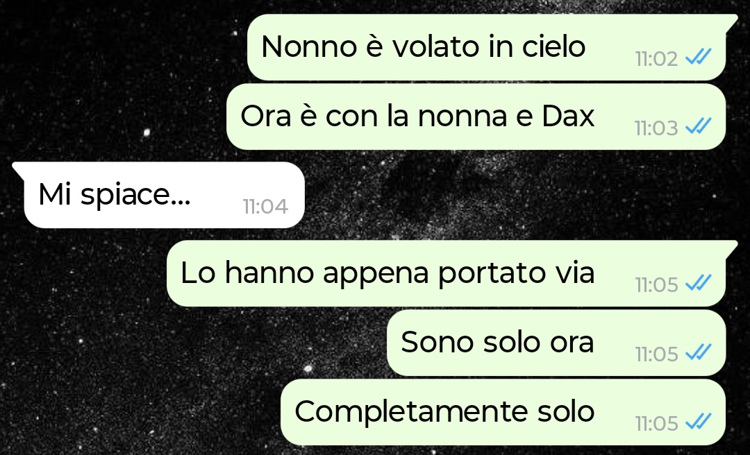 “Vi scrivo perché mi è appena successa una cosa devastante… mio nonno Gennaro ha da poco perso la sua battaglia con il cancro e mi ha lasciato. Lui, la persona più importante della mia vita. Quello che per me è stato nonno, padre e madre… è volato via. Il mio punto di riferimento… il mio tutto.